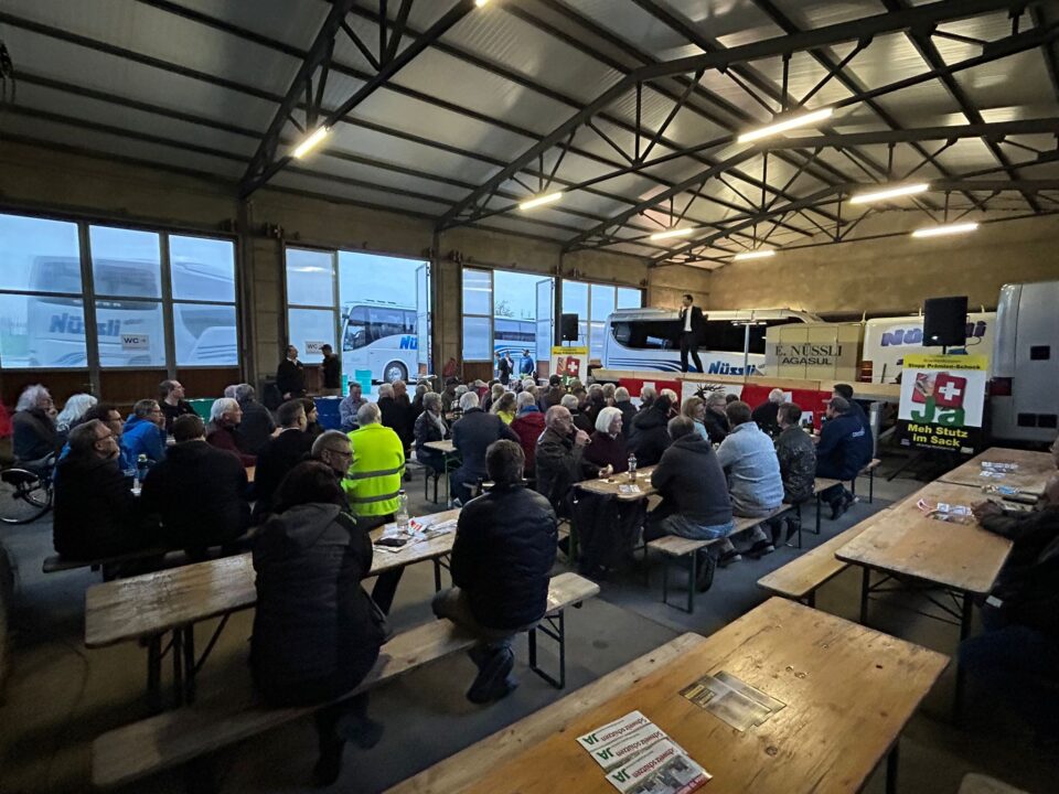 Am 15.04.2026 führte die SVP Weisslingen gemeinsam mit der SVP Illnau-Effretikon eine gut besuchte Informationsveranstaltung bei der Nüssli AG in Agasul durch. Thema des Abends war «Nein zum EU-Unterwerfungsvertrag». Ziel des Anlasses war es, die Parteibasis sowie interessierte Sympathisantinnen und Sympathisanten über die aus Sicht der SVP problematischen Inhalte des Vertragswerks zu informieren und für den weiteren Abstimmungskampf zu sensibilisieren.